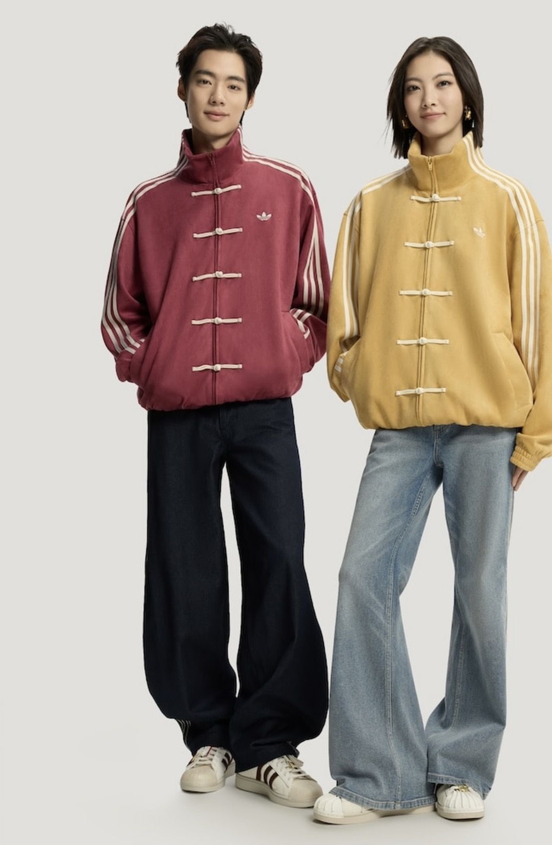 Inspired by Chinese New Year (CNY) design elements, each jacket features traditional Chinese knot-style button detailing on the front, creating a distinctive fusion of Eastern heritage and contemporary street fashion. The contrast stripe detailing on the sleeves adds a sporty, modern edge, making this combo pack perfect for casual wear, college outfits, and festive street looks.